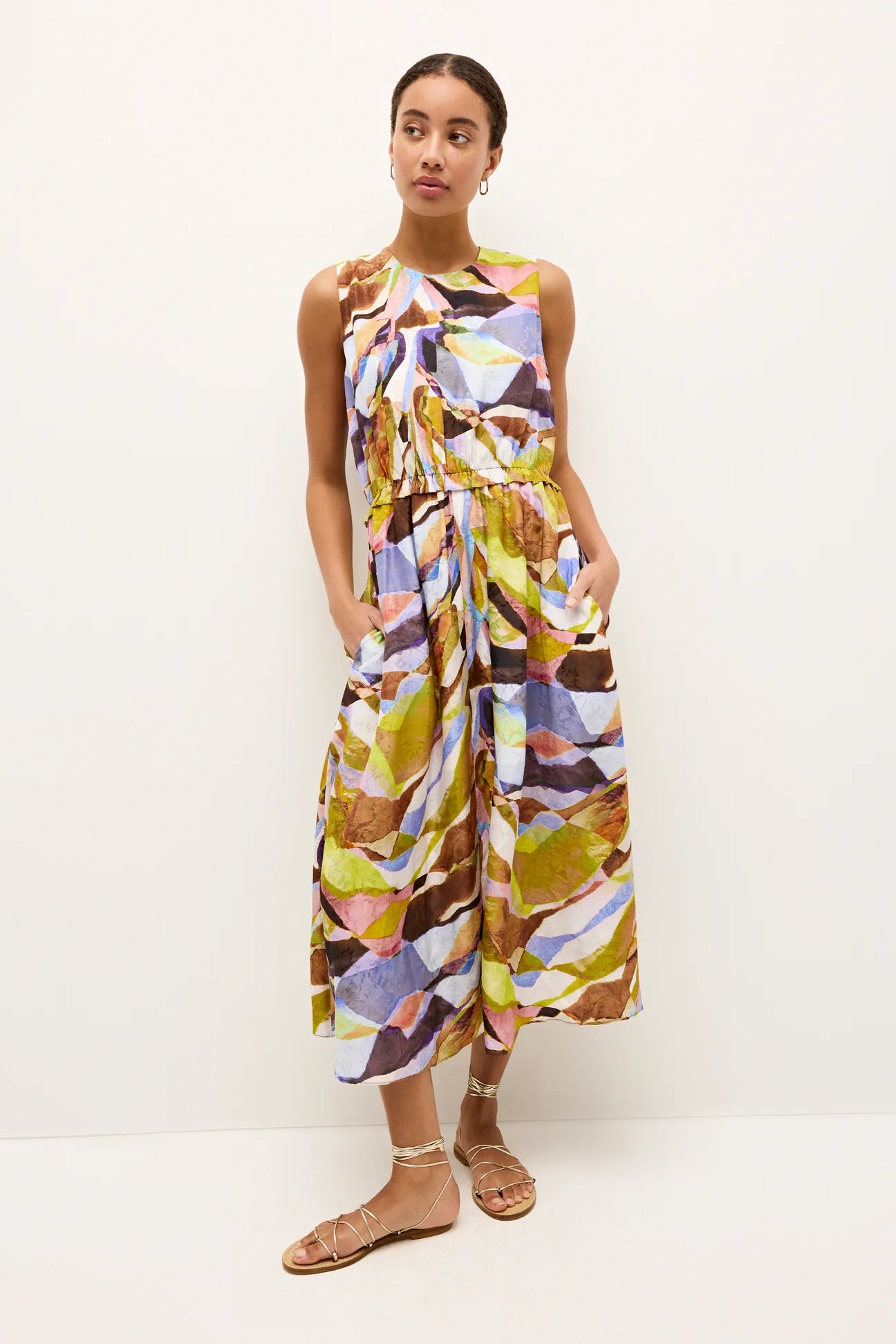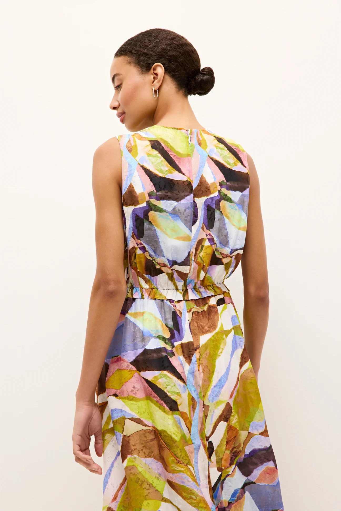 Delivering head-turning style without sacrificing comfort has always been a Marie Oliver superpower. For proof, look no further than our new Jala tank dress. Featuring an elastic waist with ruffle detailing and a flattering A-line shape, Jala comes in our bold Stained Glass pattern for spring. The gorgeous jacquarded silk blend fabric can be elevated to a fancier occasion, or worn with leather and sneakers!