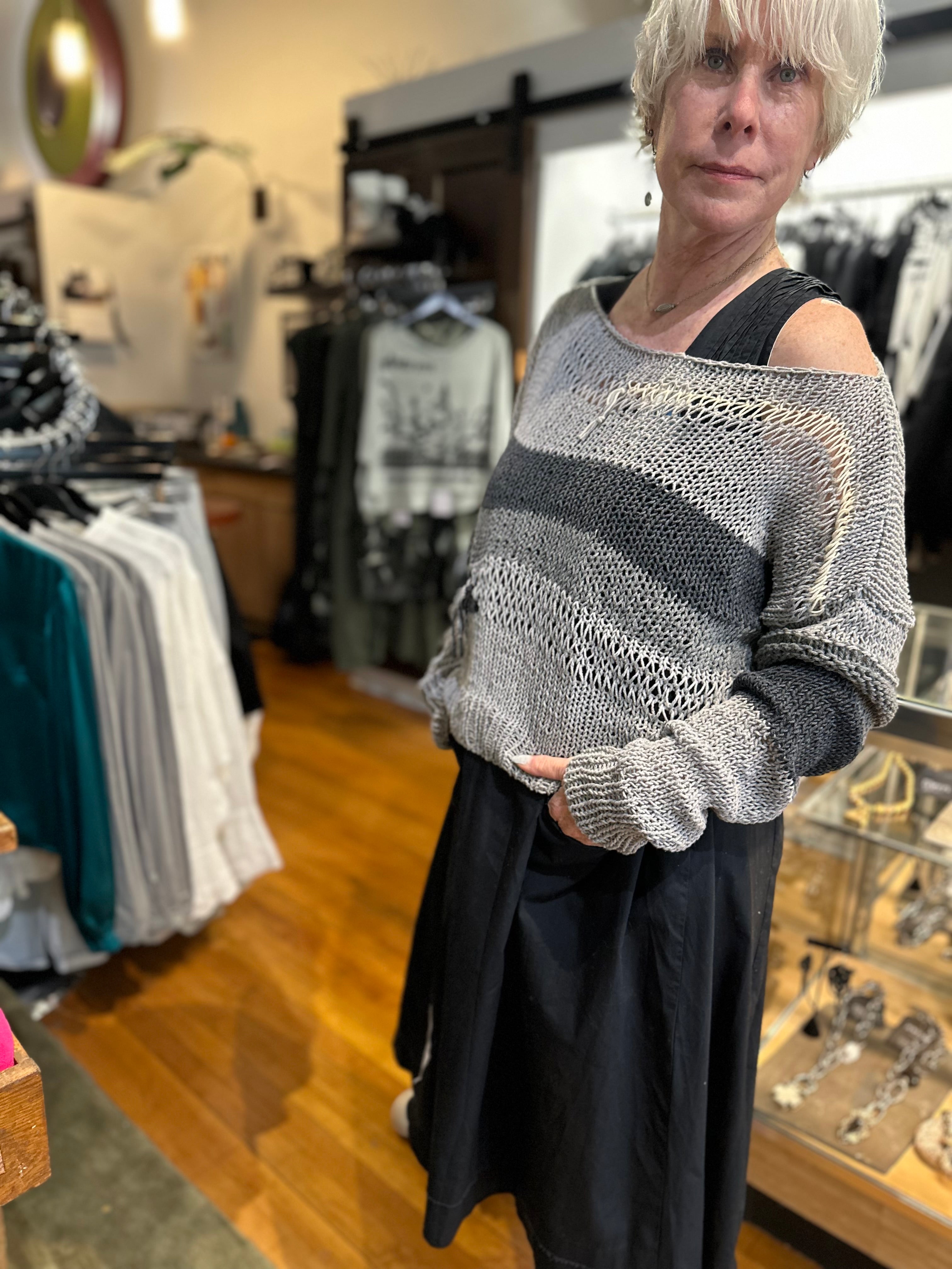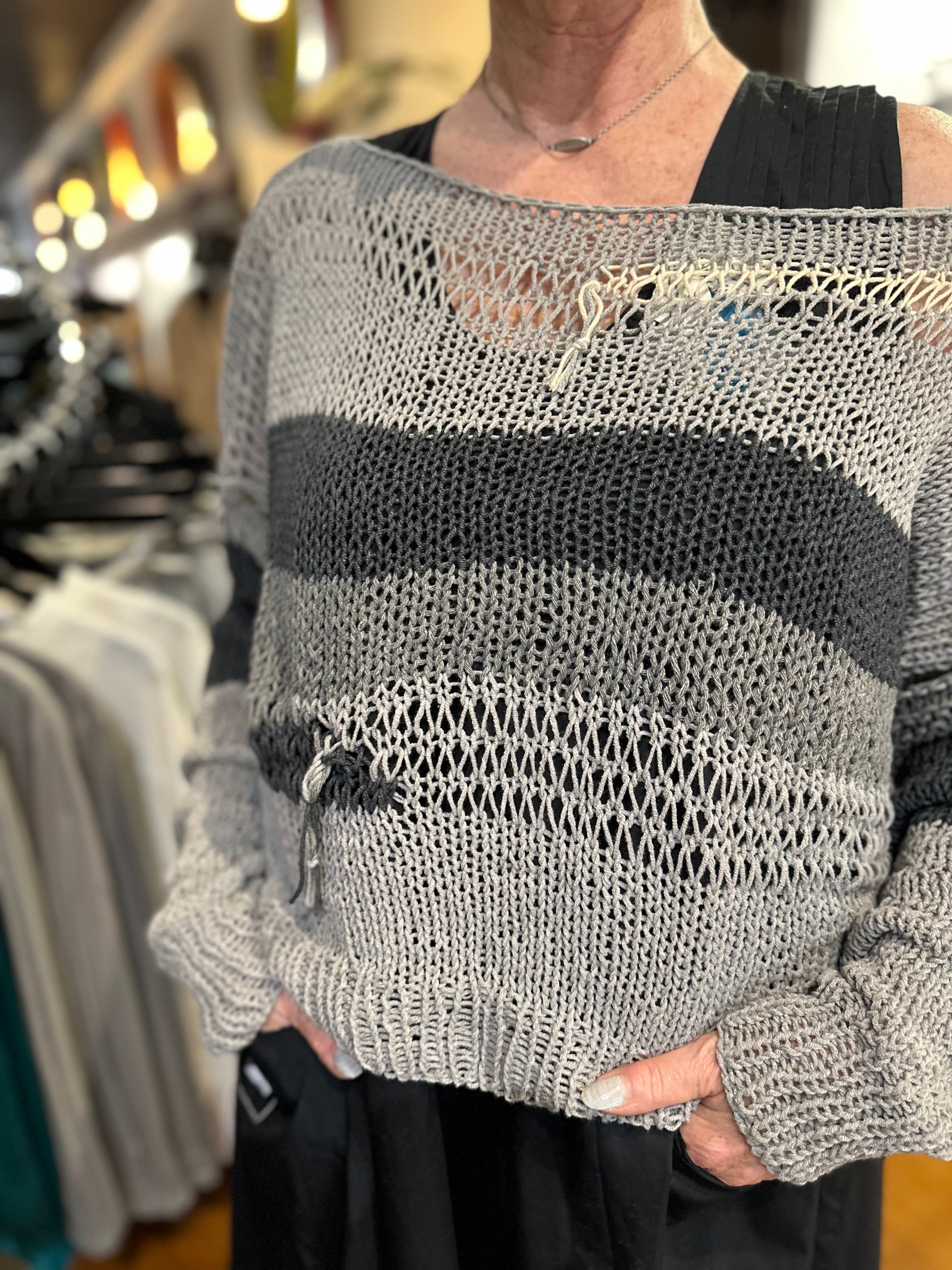 •  Long Sleeves and purposeful drop stitching