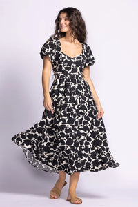 The Rachel dress is an elegant maxi dress featuring puffed-sleeves, a sweetheart neckline, and comes with a matching belt to emphasize the fit and flare silhouette. Match it with sandals for garden parties or dress it up with heels for nights out.